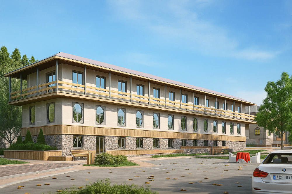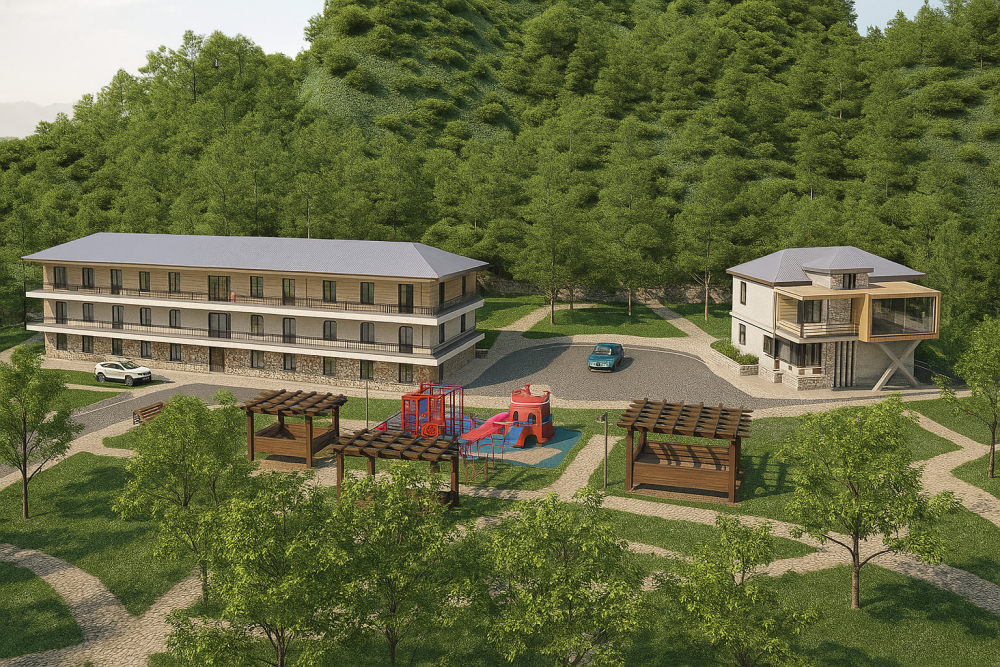 - Müasir və daş-şüşə harmoniyasına əsaslanan yaşayış və istirahət evləri